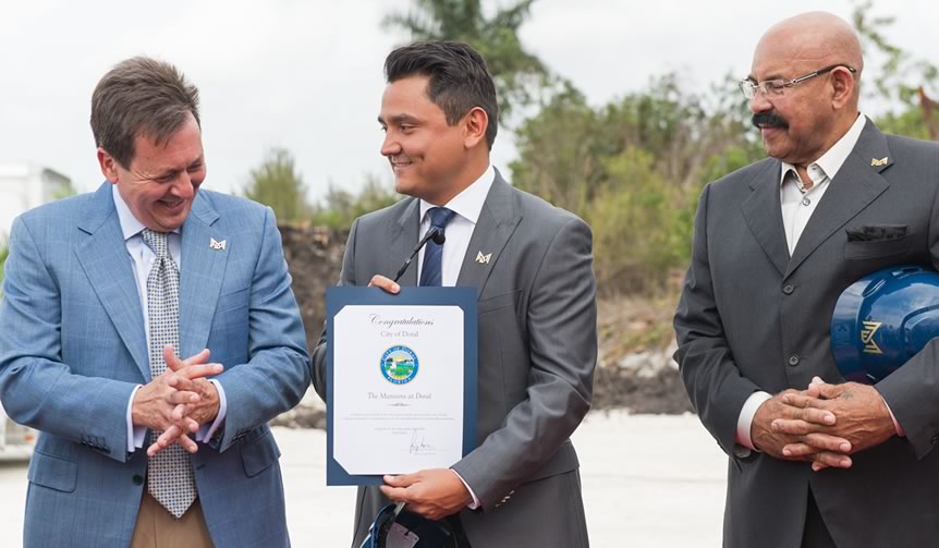 En horas de la tarde del viernes 11 de Abril se llevó a cabo una celebración íntima del comienzo de movimiento de tierra de The Mansions at Doral; entre socios, amigos, autoridades locales y celebridades. Este proyecto es único en la ciudad e introduce un estilo de vida irrepetible.